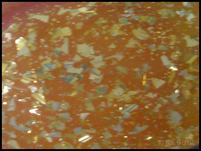 And if you just can't get enough gold flakies in your life, here is Gold Glitter, a gold flakie topcoat! Below it's on it's own with a ton of coats, and I don't recommend it this way. But you get the idea.